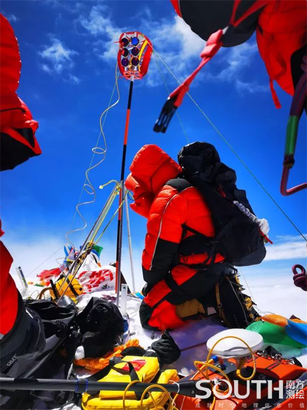 5月27日11時整,2020珠峰高程測量登山隊成功登頂珠穆朗瑪峰,他們在峰頂豎立覘標,并開展各項峰頂測量工作。由南方測繪集團聯合國測一大隊、中國電子科技集團公司第二十二研究所定制開發的“高原冰雪探測雷達系統”、由南方測繪集團常州附件工廠定制生產的覘標登頂珠峰,成為此次珠峰高程測量不可或缺的主力設備。