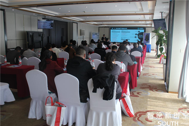 隨后,付國作《高端地理信息裝備及應用解決方案》主題報告,從無人機航測、全站儀、激光雷達測量、高端測繪裝備、精密測量和智能監測、測繪教育關鍵技術與創新應用等七個方面全面介紹了南方新技術和解決方案;南方衛星導航副總工程師丁永祥在《北斗高精度衛星定位應用解決方案》主題報告中,詳細介紹了南方測繪推出的北斗高精度衛星定位硬件裝備和多行業應用案例;最后,南方智能市場總監齊麟以智繪創新為主題,分別從新技術賦能新型基礎測繪、自然資源信息化解決方案、三維時空數據智能化應用三個方面勾勒出智析新時空、新未來的畫面。