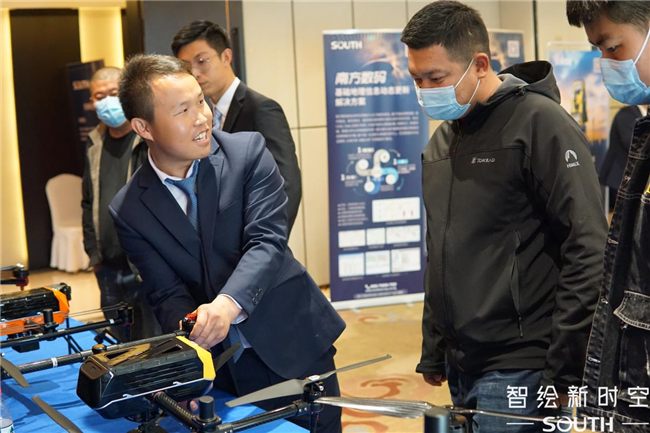 本次大會現場展出的產品和方案豐富,用戶參與度和滿意度很高。大會分七個展區,集中展示了南方無人機、三維激光掃描儀、自動全站儀、RTK等系列智能新品,也分享了測繪教育、自然資源信息化、精密測量、智能監測、行業信息化等多領域的解決方案,每個展區都有南方測繪技術工程師進行細致的演示和講解,展區氣氛熱烈。