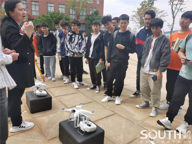 周斌為學校師生帶來無人機航測理論及實操講解,在現場試飛中一一解答師生們提出的問題。
