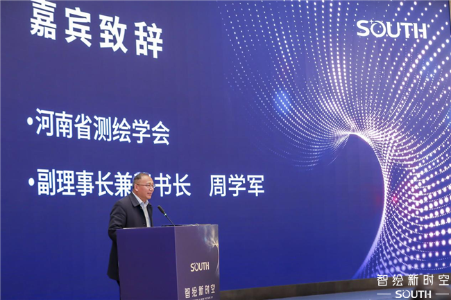 接下來,河南省測繪學會副理事長兼秘書長周學軍為會議致辭。他說,南方測繪鄭州公司依托南方測繪集團深厚的品牌積淀和強大的技術研發實力,將星級服務推進到市場和項目一線,為河南省自然資源管理和測繪地理信息產業發展提供了極大幫助。