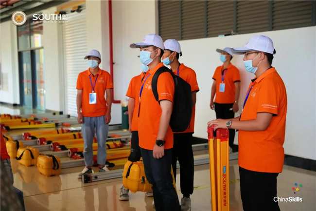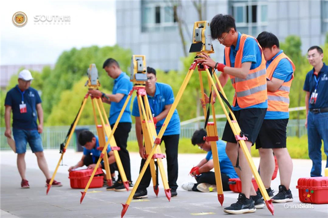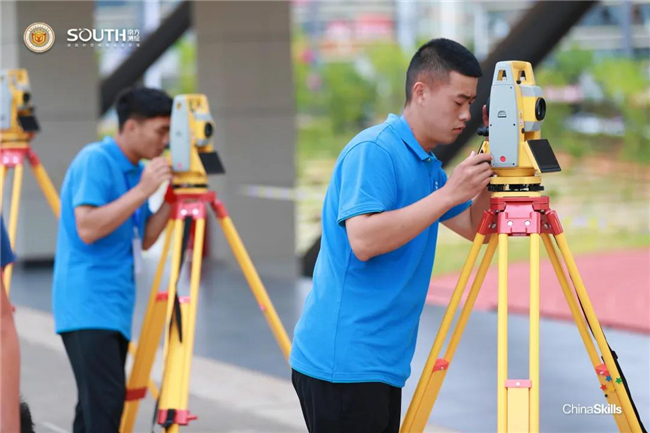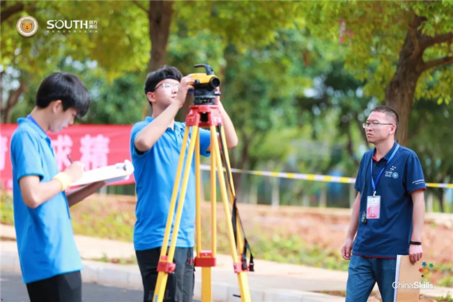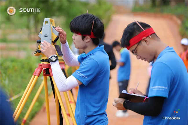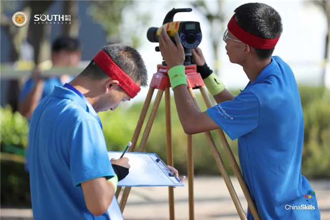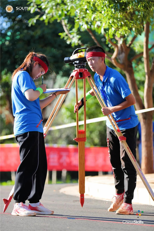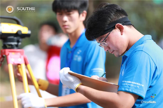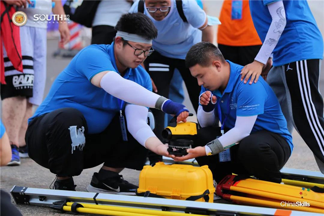 嘹亮的吶喊聲停,口哨聲一響,參賽的選手們手提設備快步向前,隨即一系列測量操作有條不紊地開展。這是全國高職技能大賽工程測量賽項的比賽現場。