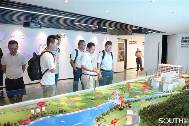 在向高照的陪同下,嚴文武一行首先參觀了南方測繪體驗中心,詳細了解南方測繪集團的發展歷程、企業文化、發展愿景等內容。向高照對集團的產品及業務進行了介紹,雙方就無人機航測、三維點云數據采集、智能監測系統、實景三維平臺、數字孿生等技術在行業內應用的問題進行了深入探討。