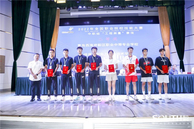 全國測繪地理信息職業教育教學指導委員會常務副主任,自然資源部人力資源開發中心黨委書記易樹柏發表講話,他說,2021年,黨中央、國務院召開全國職業教育大會,習近平總書記對職業教育作出重要指示,提出“職業教育前途廣闊、大有可為”,為新時代技術技能人才成長指明了前進方向、提供了根本遵循。自然資源部高度重視技術技能人才的成長,并把技能大賽作為培養技術技能人才的重要抓手,先后聯合教育部、人力資源社會保障部、中華全國總工會、共青團中央、全國婦聯等有關部門和單位多層次、多類型的職業技能競賽。我們要把握機遇,應對挑戰,以問題為導向,以提質培優、增值賦能為主線,推進辦學模式、培養模式、教學模式、評價模式改革,促進產業鏈、崗位鏈、教學鏈深度融合,提升服務發展和促進就業創業的能力,進一步釋放職業教育的政策和人才紅利。他特別提出,感謝南方測繪對本次大賽的鼎力支持,為參賽選手奪得佳績打下堅實基礎。隨后,出席閉幕式的領導先后向各獲獎參賽隊代表、獲獎優秀指導教師頒發了獲獎證書。