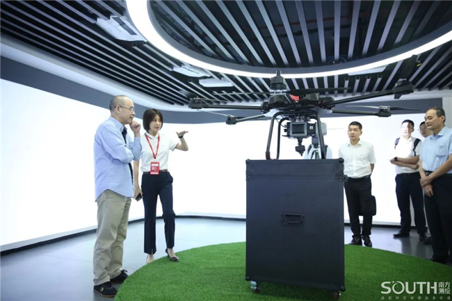 在馬超的帶領下,胡揚忠一行陸續參觀了南方測繪體驗中心及衛星導航、三維激光和無人機等產品生產線,充分了解了南方測繪的發展歷程、發展情況以及公司在測量測繪裝備、衛星導航定位、地理信息數據服務等方面的技術成果和應用方案。胡揚忠感慨道,從某種程度來說,??低暸c南方測繪保持了同頻發展。