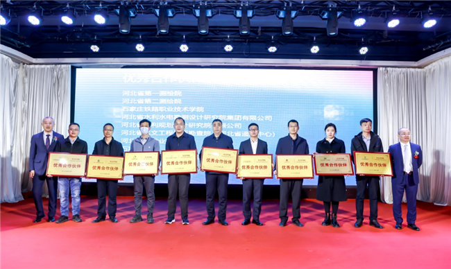 南方測(cè)繪集團(tuán)石家莊分公司成立20周年,一路以來結(jié)識(shí)了眾多伙伴,精誠(chéng)合作,攜手共進(jìn)。為表示對(duì)合作伙伴的感謝,葛瑞華與孟祥光在會(huì)議現(xiàn)場(chǎng)為河北省第一測(cè)繪院、河北省第二測(cè)繪院、河北省水利水電勘測(cè)設(shè)計(jì)研究院集團(tuán)有限公司、核工業(yè)航測(cè)遙感中心、石家莊學(xué)院等20家優(yōu)秀合作單位頒發(fā)優(yōu)秀合作伙伴牌匾。