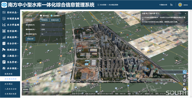 南方中小型水庫一體化綜合信息管理系統(tǒng)軟件具備綜合聯(lián)動分析功能,可基于高差、淹沒速度及淹沒方式進行洪水淹沒預(yù)演,并根據(jù)實際情況制定撤離預(yù)案,另外還可基于歷史數(shù)據(jù)進行預(yù)測。