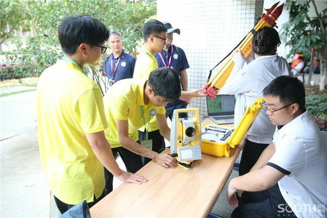 本次競賽中使用的測量設備均為南方測繪提供,為保障競賽順利進行,50余名南方測繪的技術人員在競賽全程待命。賽前,南方測繪技術工程師開始對各類比賽儀器進行精準調校工作。賽時,他們還及時對完賽設備進行回收并檢校,提供給下一組使用,每天超過十二小時在現場提供技術支持。加上現場40余名工程師高效的技術服務,為大賽圓滿結束保駕護航。