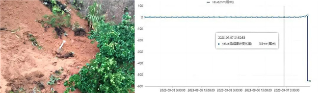 2023年9月,廣東省梅州興寧連續(xù)降雨,滑坡體于9月7日發(fā)生垮塌,設(shè)備成功預(yù)警。