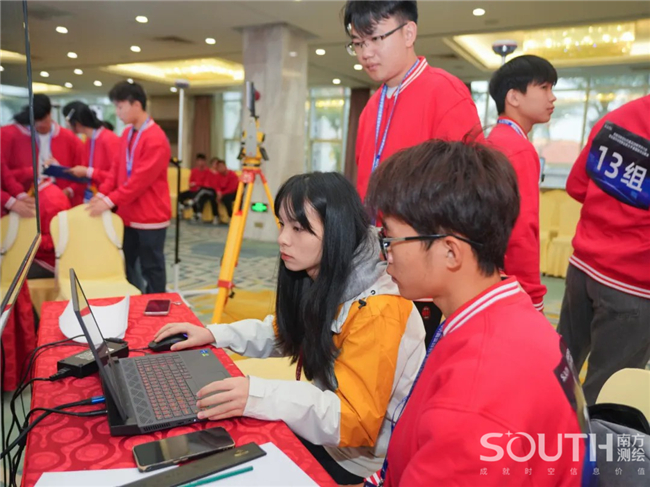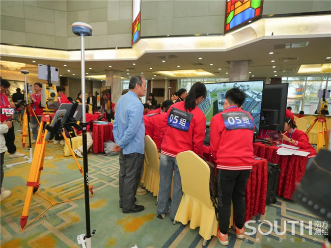 展演現(xiàn)場(chǎng),百名參賽選手五五成隊(duì),進(jìn)入“南方元宇宙智能測(cè)繪場(chǎng)景”,共同完成目標(biāo)測(cè)區(qū)的數(shù)字測(cè)圖。賽場(chǎng)上,選手們有條不紊,沉著應(yīng)對(duì),團(tuán)隊(duì)協(xié)同作業(yè),1人操作全站儀、1人精準(zhǔn)架設(shè)棱鏡、1人使用RTK、1人繪制現(xiàn)場(chǎng)草圖記錄關(guān)鍵數(shù)據(jù)、1人負(fù)責(zé)內(nèi)業(yè)階段的成圖工作,整個(gè)團(tuán)隊(duì)共同完成測(cè)區(qū)的任務(wù)。