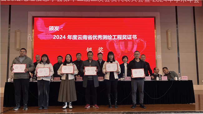 本次會議中,南方測繪“新型基礎測繪試點-全息采集及實景三維生產采購項目”獲得2024年度云南省優秀測繪工程獎銀獎,“云南省水旱災害風險普查項目河道地形測量委托服務”獲得2024年度云南省測繪科技進步獎三等獎,《基于車載激光LiDAR數據道路裂縫信息自動提取方法》論文獲得云南省測繪地理信息學會2024年度優秀論文。