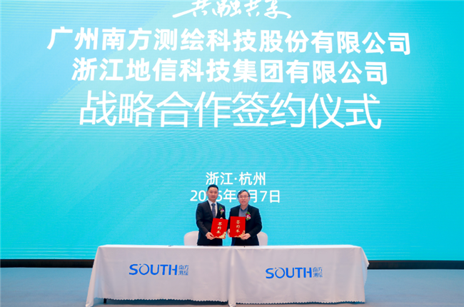 3月7日,南方測繪集團與浙江地信科技集團有限公司(以下簡稱"地信科技集團")在杭州正式簽署戰(zhàn)略合作協(xié)議。南方測繪集團副總裁向高照與地信科技集團黨委書記、董事長葛為燎共同出席簽約儀式并代表雙方簽字,標志著兩家行業(yè)領(lǐng)軍企業(yè)正式開啟全方位戰(zhàn)略合作新篇章。