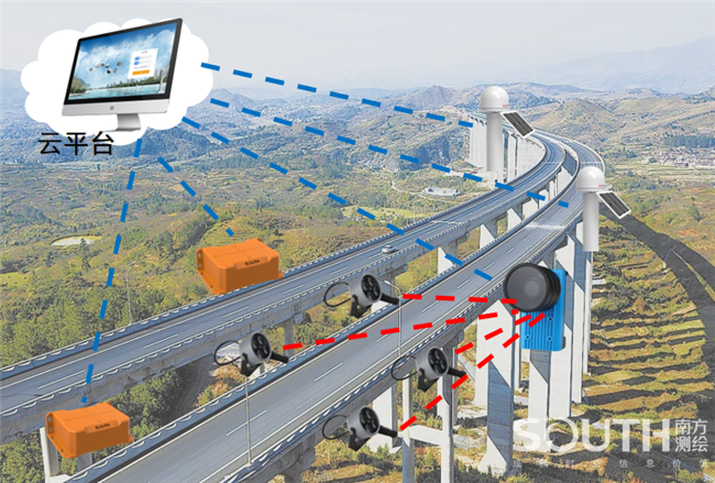 南方測(cè)繪以公路場(chǎng)景應(yīng)用為突破口,形成了一整套交通輕量化監(jiān)測(cè)解決方案。它是一種針對(duì)公路邊坡、橋梁和其他特殊場(chǎng)景的高效、低成本監(jiān)測(cè)解決方案,通過(guò)集成化、低功耗、小型化的傳感器和通信技術(shù),實(shí)現(xiàn)對(duì)監(jiān)測(cè)對(duì)象關(guān)鍵結(jié)構(gòu)參數(shù)的實(shí)時(shí)監(jiān)測(cè)和預(yù)警。