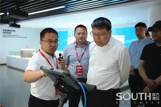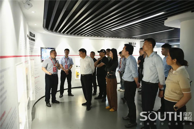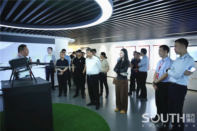 在繆小林等的陪同下,中國測繪學會地下管線專業委員會專家團一行參觀了南方測繪體驗中心。在這里,專家團一行聽取了集團發展歷程、現狀以及產品和業務方向等的匯報,重點了解了近年來南方測繪高端裝備國產化、智能化和產業化應用的發展情況,并對南方測繪三十多來取得的發展成果表示肯定。