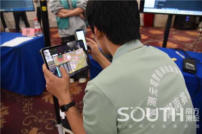 展演賽現(xiàn)場,參賽選手通過真實測繪設(shè)備與虛擬仿真系統(tǒng)的高效協(xié)同,將測繪數(shù)據(jù)與數(shù)字場景完美融合,打造了一場極具創(chuàng)新性的元宇宙智能測繪競技盛宴。現(xiàn)場氣氛熱烈,吸引了90余位行業(yè)專家和學(xué)者駐足觀看。