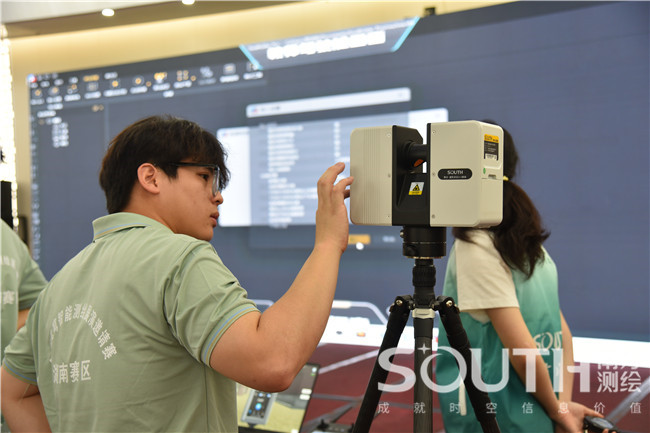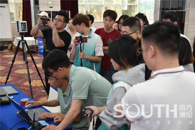開賽后,來自10所學(xué)校的11支隊伍44名參賽選手通過應(yīng)用虛實結(jié)合的全站儀、RTK、無人機(jī)、架站式三維激光掃描儀等在南方測繪元宇宙智能測繪場景中完成目標(biāo)測區(qū)的數(shù)字測圖、無人機(jī)古建筑尋寶及古建筑點云三維建模任務(wù)。