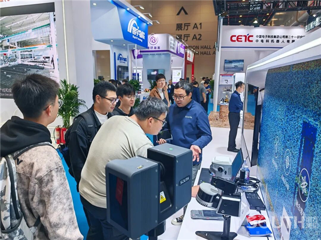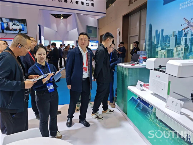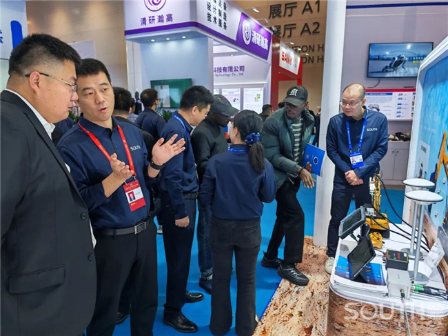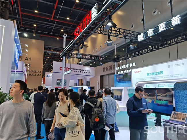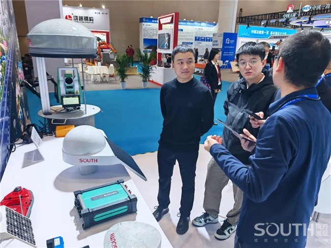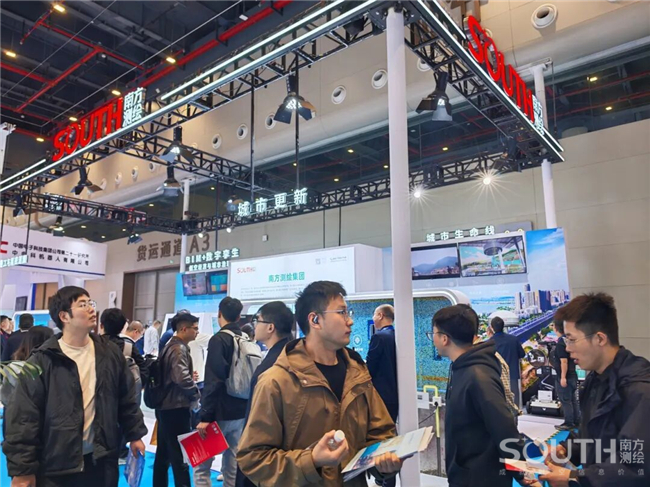 南方測繪攜高精度測量機器人、覓境測量系統、輕小型機載激光雷達、實景雙攝RTK、一體化北斗位移棧、精蟄3.0管線探測儀等高端數據采集裝備,以及挖掘機3D引導系統、低空信息服務、北斗立體感知監測等專業解決方案驚艷亮相,展臺人氣火爆,成為博覽會現場備受矚目的“打卡勝地”。