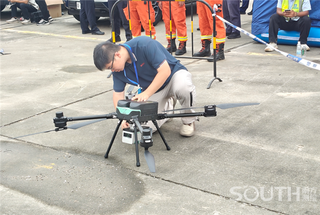 南方測繪自研無人機可搭載自研激光雷達或五鏡頭相機,在防洪演練、地災救援中完成堤圍岸線地形測量、受災區域快速掃描等任務。