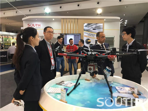 此次是南方測繪第17次參加德國展,也是南方測繪轉型升級大地信戰略成果首次海外集中出現,全站儀、RTK等傳統裝備,無人機載激光雷達,最新款的無人機裝備,高精度衛星導航定位設備、智能測量船及高鐵精密測量設備等新興裝備,全線高端裝備和地理信息及跨行業應用的解決方案精彩亮相,令前來參觀了解的客戶朋友眼前一亮,耳目一新,也改變了國際用戶對于南方測繪“純設備提供商”的一貫印象。