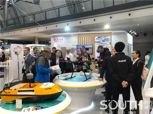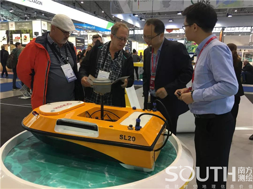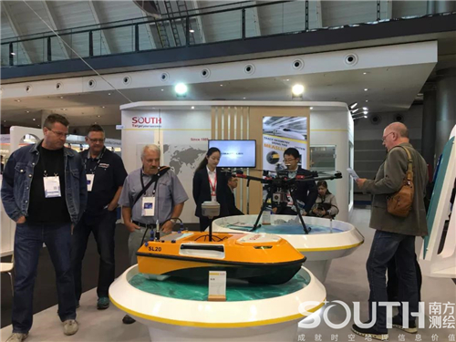 南方SL20智能測量船可實現自主導航、智能避障,可持續進行高強度作業,利用無人船水下測量技術獲取水下地形數據精度能夠滿足大比例尺地形圖水下地形測量的精度要求,且在復雜水域條件下,能夠大大降低測繪人員的勞動強度,成倍提高外業測量效率,避免外業人員水上作業的危險。南方創新型智能測量船船以“高精度、自動化、高效益”的特點,也成為本次展覽的“寵兒”。