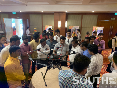 當天中午,在孟買寶石公園附近進行了三維激光的現場操作演示,包括無人機載與車載三維激光數據采集。盡管烈日當空,大家依然興趣盎然,爭相與設備合影留念,就實地操作提出了各種問題。外業演示后,進行了現場的數據處理。在下午的成果展示環節中,高精度點云成果與數十個RTK實測數值相比較,高程標準差值均顯示在3厘米以內,這一效果著實征服了不少老測工。會后,多個用戶還積極地與南方團隊探討相關個案的技術實施方法,相比起以往單純的地面測量,如今市場上有了更多的選擇,這無疑是業界的福音。