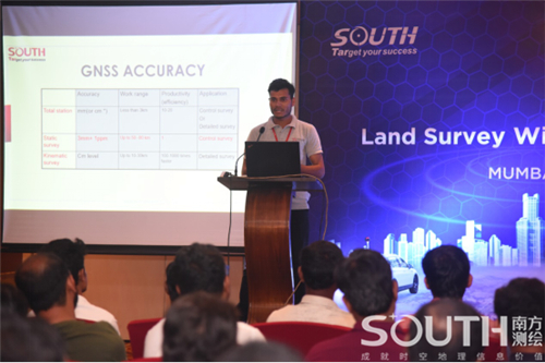在印度分公司本地技術經理為用戶介紹了南方拳頭產品全站儀和GNSS的最新動態后,會議進入到新型的測量模式展示環節,南方國際業務部副總經理張少雄為參會用戶詳細介紹了南方測繪三維激光軟硬件裝備、經典項目案例分享,指出了用戶們關注聚焦的問題,并根據傳統測量作業的各種痛點提出了針對性的解決方案。期間提問者眾多,市場對于新事物新手段相當感興趣,而南方代表為用戶們提供了不同的思路和豐富的信息。