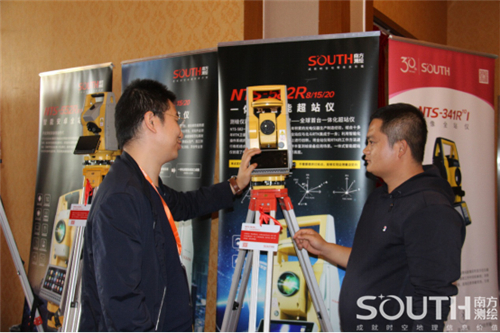 會議展區布展了南方全新的高端儀器設備,其中最新的智能安卓全站儀NTS-552、NTS-582、無人機MF2500備受關注。