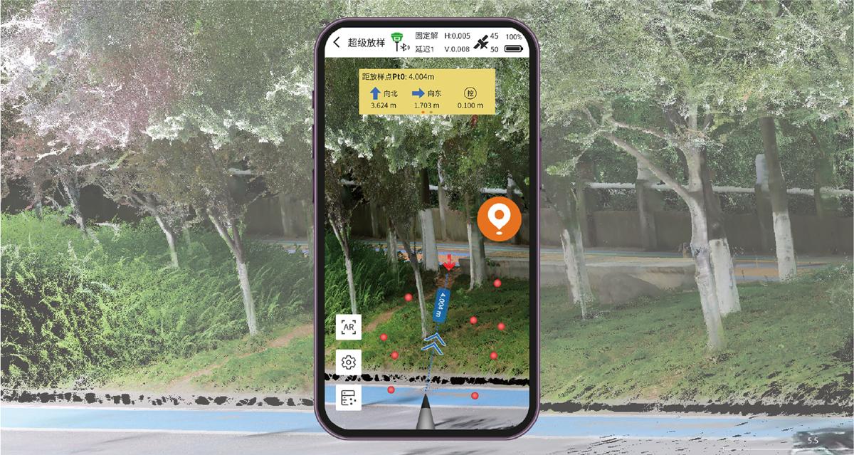 創(chuàng)新三維點(diǎn)云可視化系統(tǒng),支持多目標(biāo)點(diǎn)位智能標(biāo)定與路徑規(guī)劃。測量員可通過AR界面實(shí)時(shí)查看放樣軌跡,結(jié)合智能導(dǎo)航指引,精確找尋目標(biāo),大大縮減作業(yè)耗時(shí)。