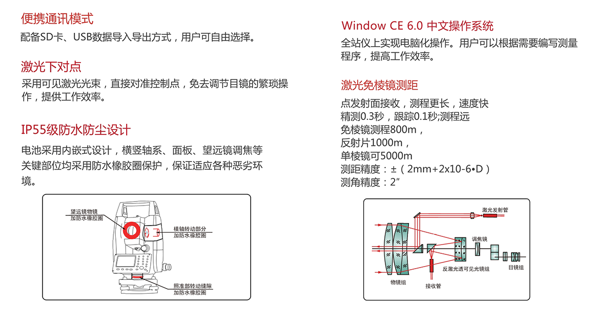 精度 | 0~500m:±(3+2×10-6·D)mm 500~1000m:±(5+2×10-6·D)mm 1000~2000:±(10+2×10-6·D)mm |